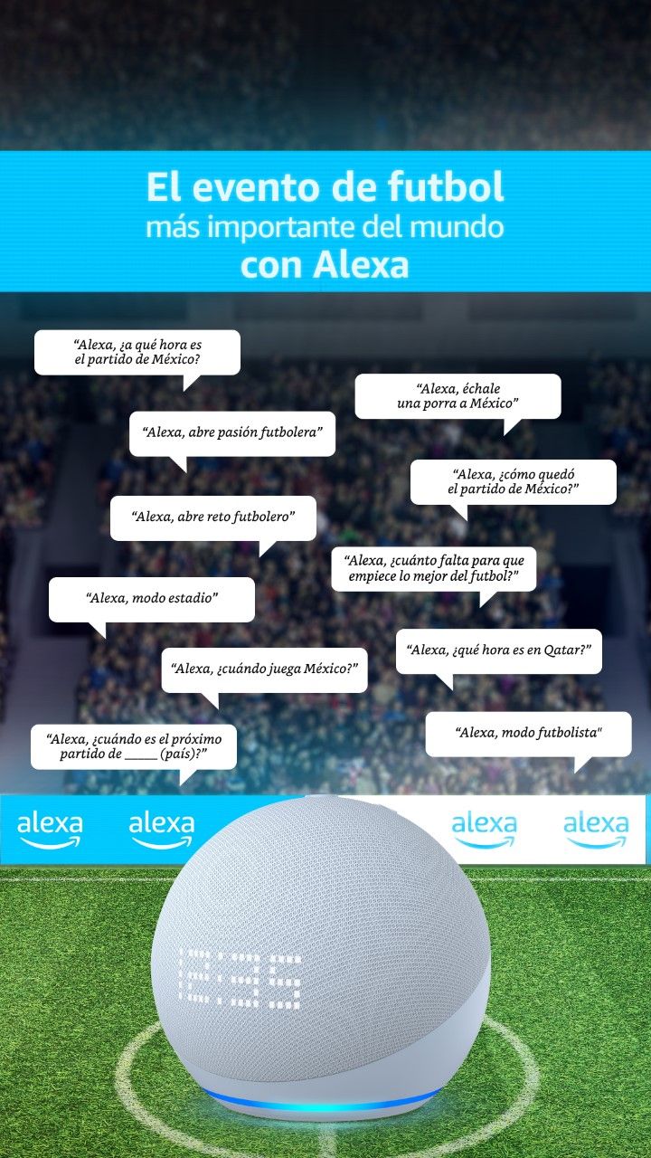Así que, si deseas estar al tanto con todo lo que esté pasando en el torneo, mantener el ánimo futbolero en casa todo el tiempo, o simplemente divertirte por horas con temas de futbol, recuerda que Alexa estará junto a ti para vivir toda la pasión del balompié.