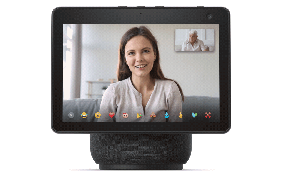 También puedes tocar el ícono de carita sonriente en la pantalla mientras estás en una videollamada de Alexa para agregar reacciones animadas breves, como corazones, risas, confeti y más. Se agregarán más efectos y reacciones en un futuro.