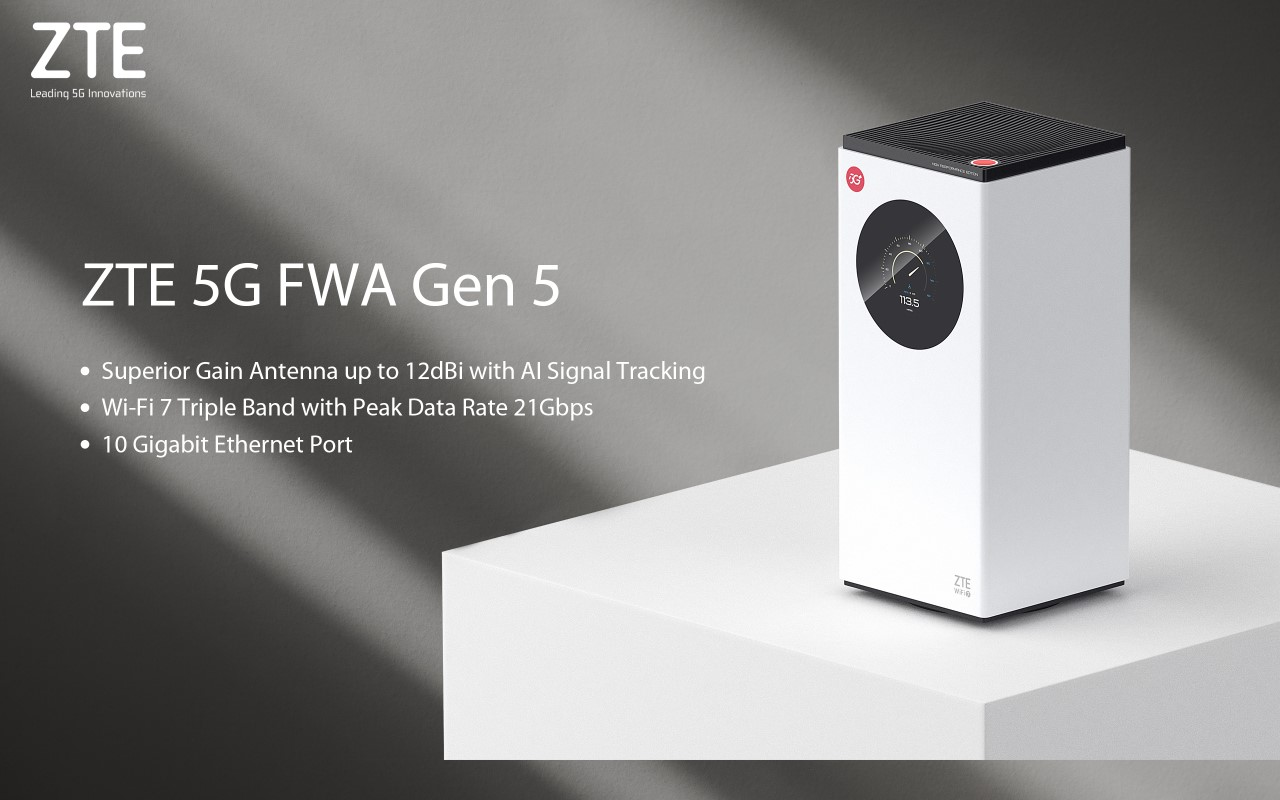 Durante la presentación de la quinta generación de la familia de terminales fijas de acceso (FWA) en el primer día del congreso, la compañía planteó el concepto "Verde, Inteligente y Seguro” junto con el lanzamiento oficial de la versión 5G FWA Gen 5 y router MC888 Pro GIS. El ZTE 5G FWA Gen 5 es compatible con el último estándar 3GPP R17 y acceso basado en capas a Wi-Fi 7 de triple banda 6 GHz/ 2,4 GHz con una velocidad máxima de Wi-Fi que alcanza hasta 21 Gbps, un puerto Ethernet de 10 Gigabit y un mayor ancho de banda.