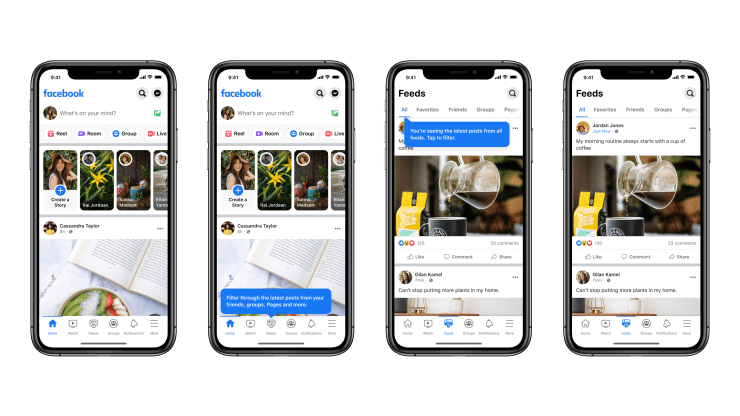 La herramienta, llamada "Feeds", es una pestaña dedicada en la aplicación de Facebook que muestra las últimas publicaciones de los amigos de los usuarios. El feed de noticias principal se conocerá ahora como "Inicio", y actuará más como un "motor de descubrimiento" basado en los hábitos online de la gente, dijo la compañía.