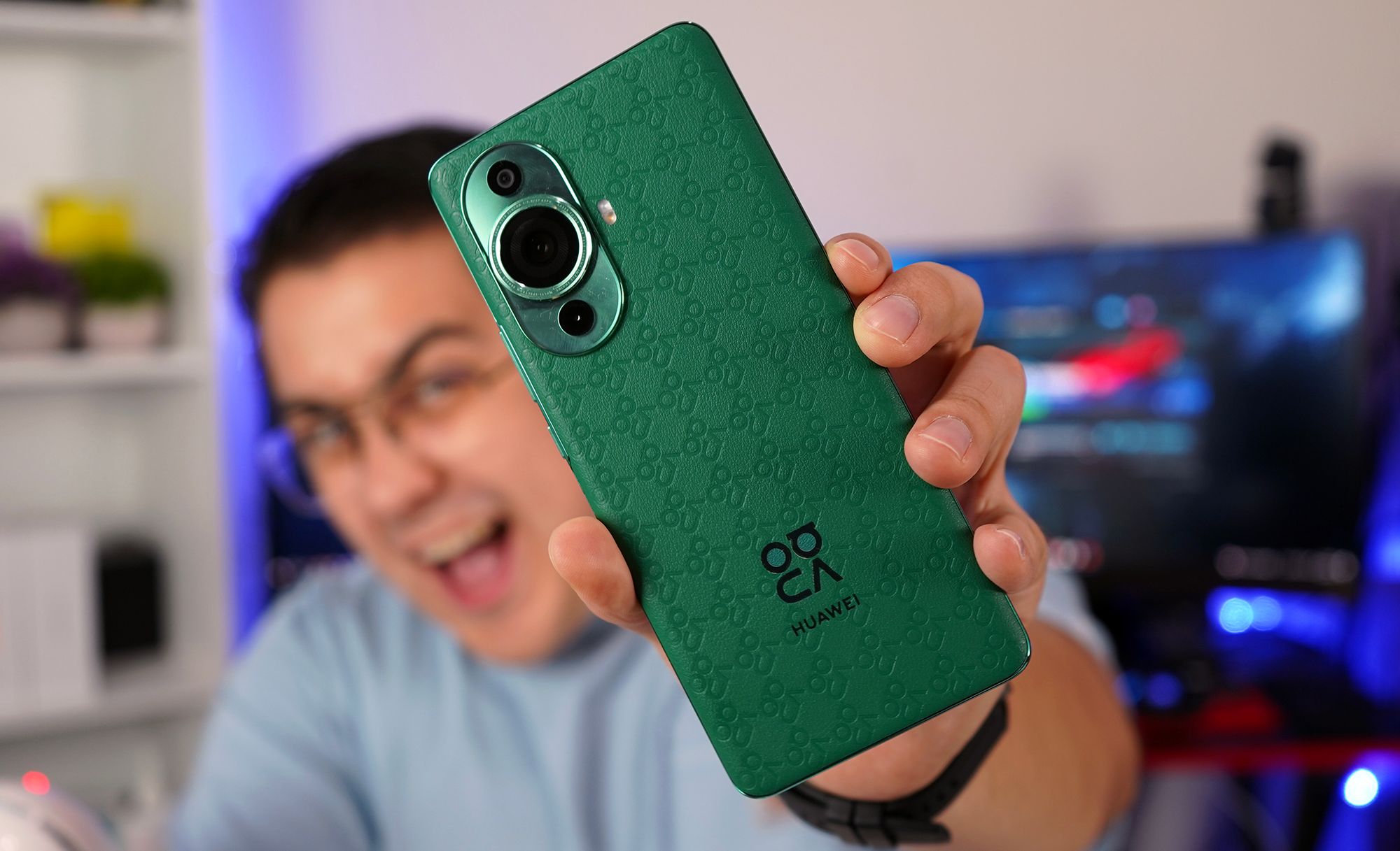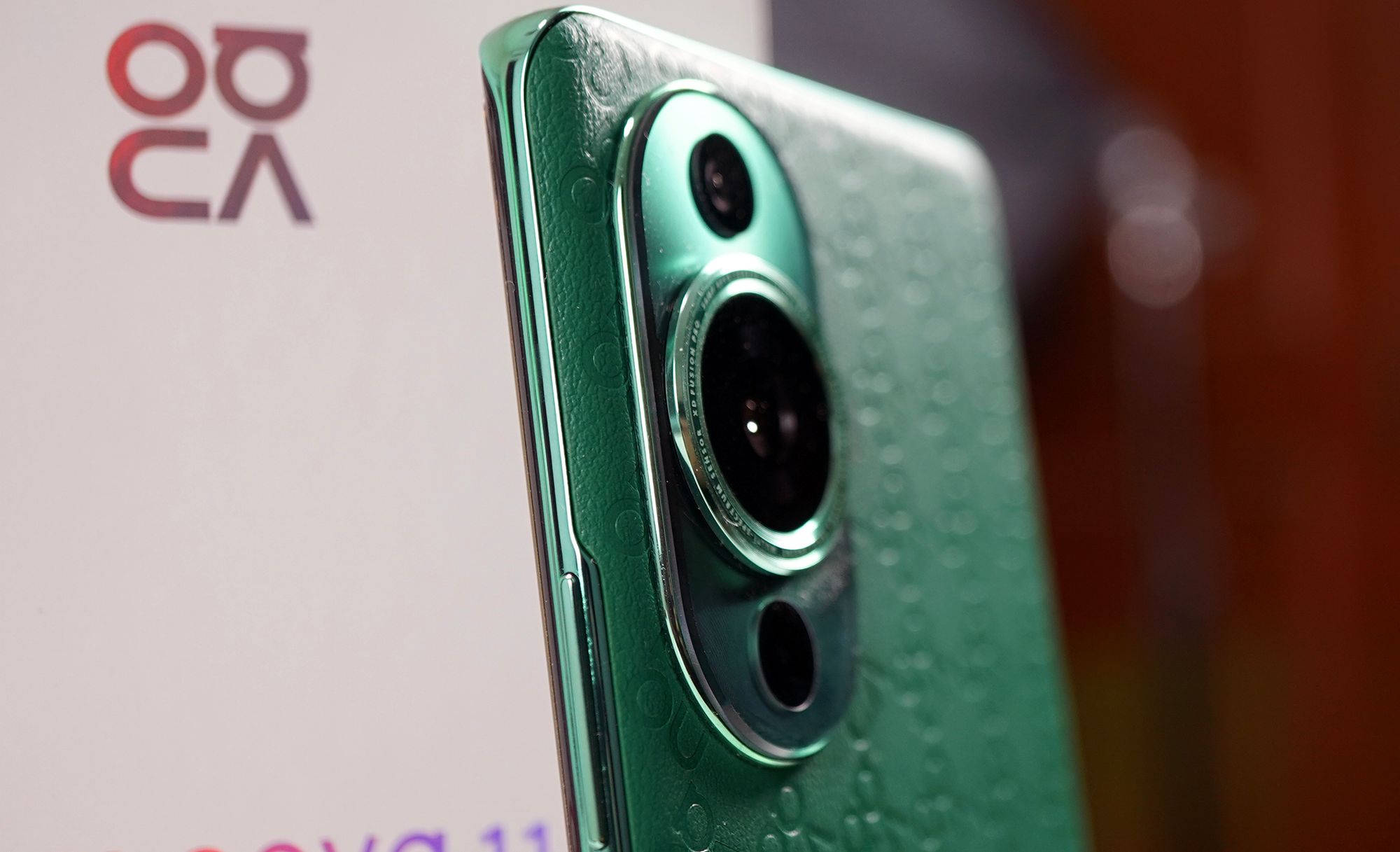 El Huawei Nova 11 Pro sorprende a primera vista. La delgada carcasa con el cristal estirado sobre los bordes y el gran módulo de la cámara en la parte trasera llaman definitivamente la atención. Además, la parte trasera es de cuero vegano, un agregado que la marca ha impulsado en sus smartphones, podemos encontrarlo en negro o verde brillante con logotipos Nova en relieve.