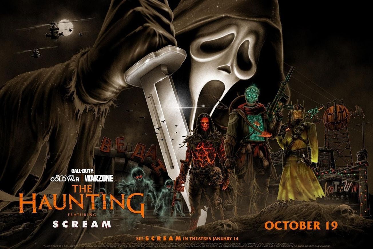 Disponible a partir de mañana, el Lote de operador SCREAM por tiempo limitado es tu oportunidad de jugar como Ghostface en Warzone y Black Ops Cold War antes de que regrese a los cines en enero de 2022, donde Paramount Pictures y Spyglass Media Group traerán de vuelta la serie de películas clásicas que definieron los 90 para el meta horror.