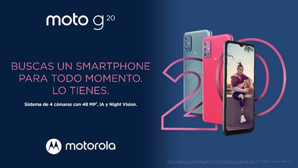 El moto g20 está disponible a partir de hoy en colores azul cielo y rosa flamingo, a través de operadores, cadenas de retail y nuestro sitio web www.motorola.com.mx desde $4,599.00