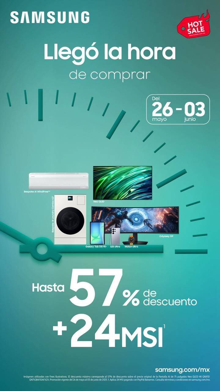 ¿Pensando en cambiar tu celular, mejorar tu pantalla o hacer tu casa más inteligente? Este Hot Sale puede ser el momento perfecto. A partir de hoy y hasta el 3 de junio, Samsung México lanza promociones especiales en algunos de sus productos más populares. Con descuentos de hasta 57%, 24 meses sin intereses, cupones exclusivos y beneficios que vale la pena aprovechar.