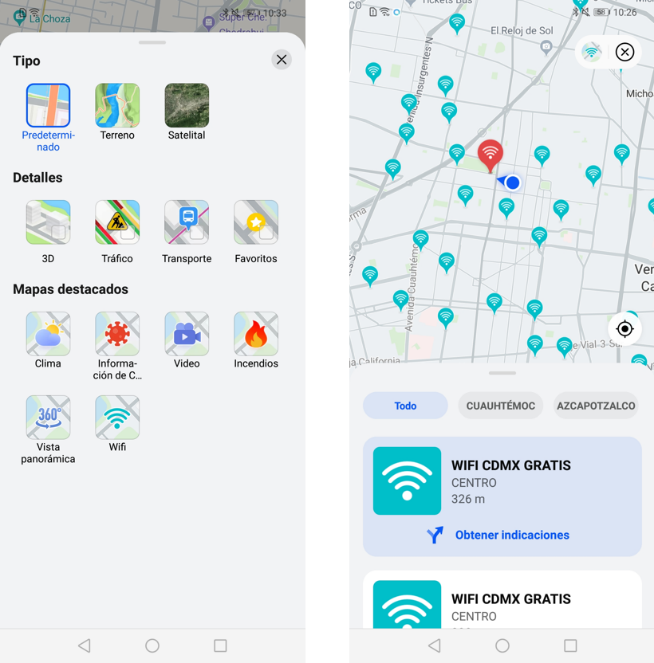 Para facilitar a los usuarios locales el acceso a este Wi-Fi sin costo, Petal Maps obtiene la información directamente del portal de Datos Abiertos de la CDMX, una herramienta abierta que permite obtener las ubicaciones importantes en la capital para mostrar las zonas Wi-Fi de la franja urbana intuitivamente. Los usuarios simplemente pueden presionar el ícono de las capas del mapa en la pantalla de inicio de Petal Maps y, en seguida, ir a las capas de mapas y desplegar la sección de Mapas destacados, donde se encuentra el ícono Wi-Fi. De esta forma, la aplicación muestra las zonas Wi-Fi gratuitas cercanas y ofrece navegación en sus tres modalidades (a pie, en bicicleta o en auto) a los usuarios para llegar a ellas. Esta función proporciona un acceso rápido y fácil a los recursos de la red pública.