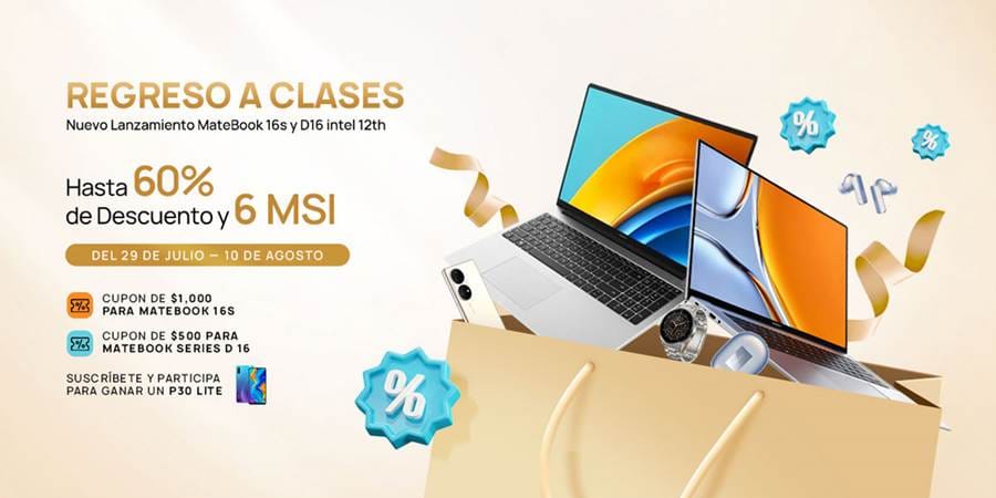 A partir del 29 de julio hasta el 10 de agosto de 2022, los dispositivos más útiles para tus clases estarán hasta con un 60% de descuento, además podrás aprovechar cupones de descuento, así como ofertas especiales en productos específicos como las computadoras de la serie MateBook.