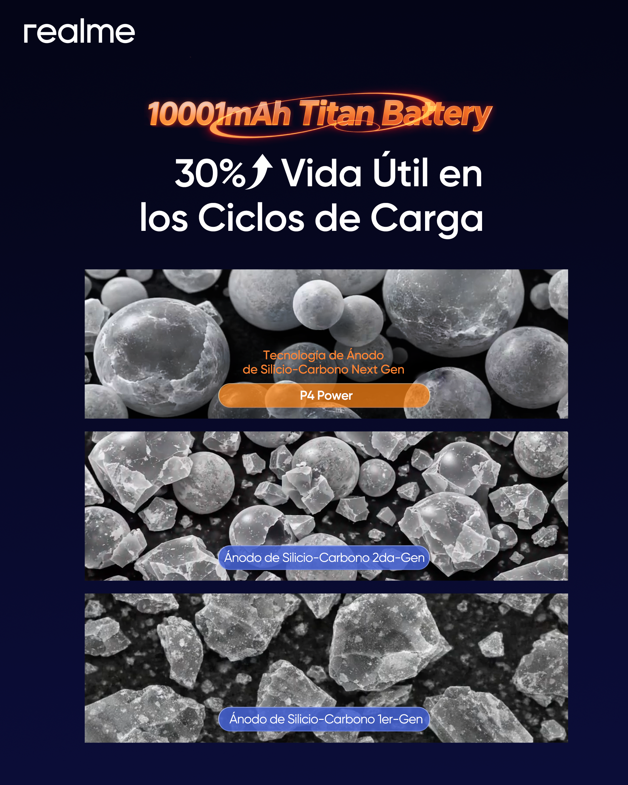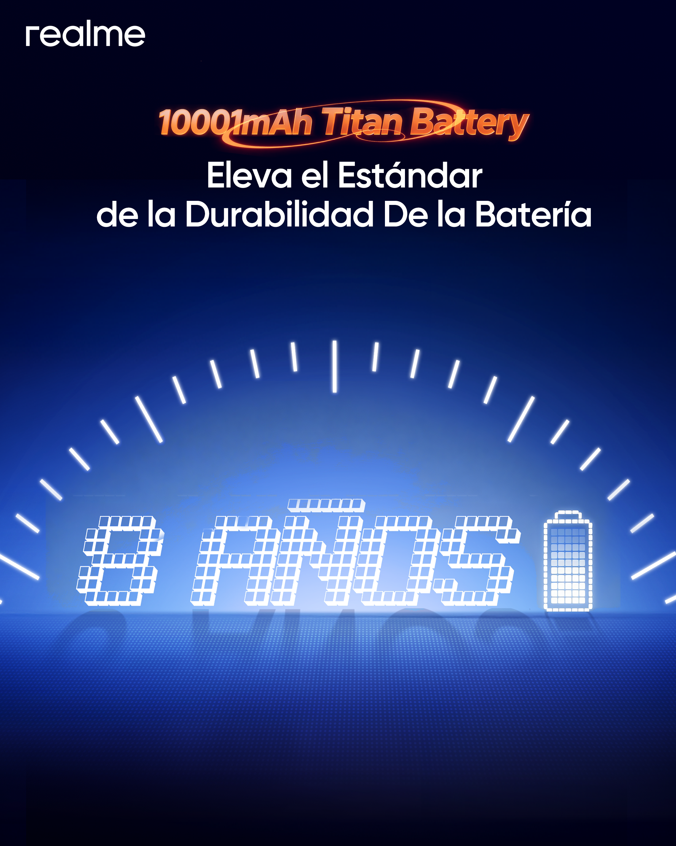 realme presenta un avance tecnológico decisivo que impulsa la innovación en baterías para smartphones hacia una nueva frontera, marcando el inicio de la era de los 10,000mAh. Con la introducción de la primera batería Titan de 10,001mAh del mundo, la marca redefine los estándares de autonomía móvil, ofreciendo a los jóvenes usuarios una potencia sin precedentes, una duración extraordinaria y un rendimiento diseñado para un uso intensivo durante todo el día.