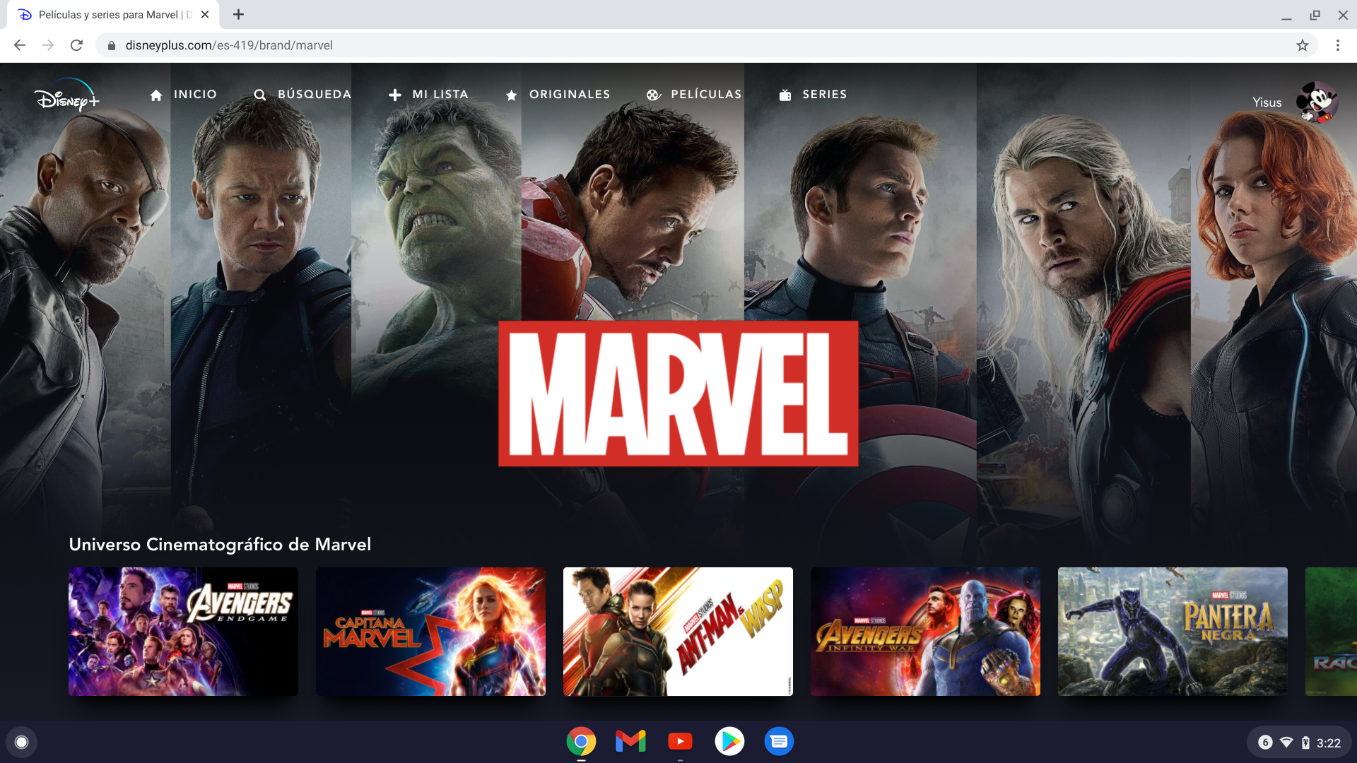 Contamos con un catálogo bastante amplio todo providente de la empresa al ratón tenemos todas las películas del universo cinematográfico de Marvel, todos los clásicos de Disney y algunas series live action, bastante contenido y series de Star wars y lo más destacado de Pixar, así como muchas películas noventeras que marcaron la infancia de muchos. También tenemos dos temporadas de Los Simpson, que según rumores se Irán incrementando conforme pasen los meses, tenemos toda la colección de Los piratas del Caribe y las películas más taquilleras de la historia como endgame, avatar, etc.