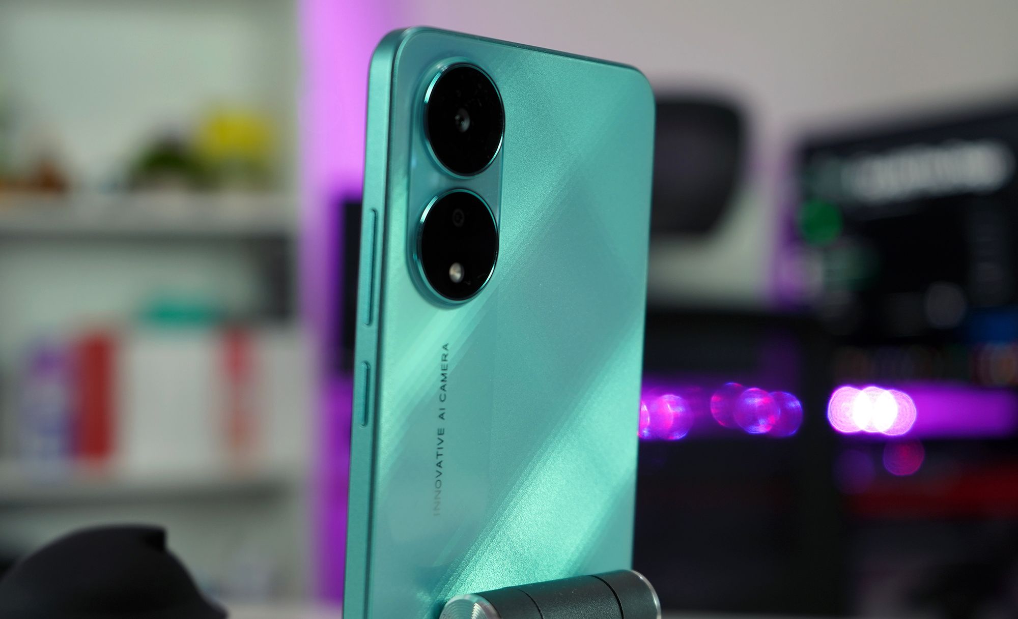 En la parte trasera, OPPO ha apilado los distintos módulos de las cámaras del A78 5G uno encima del otro, con dos círculos apilados verticalmente. Queda muy bien, pero se balancea un poco cuando se utiliza el teléfono en posición horizontal sobre una mesa o un escritorio.