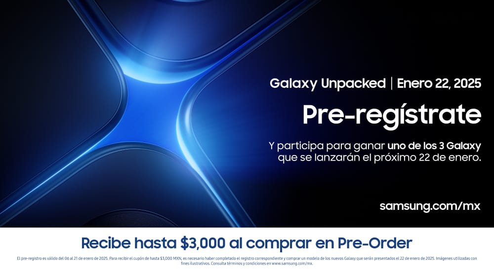Los usuarios que se pre-registren durante este periodo, recibirán hasta $3,000 MXN de descuento para aplicar durante la preventa. Además, tendrán la oportunidad de participar para ganar uno de los tres Galaxy que se lanzarán durante el Galaxy Unpacked.