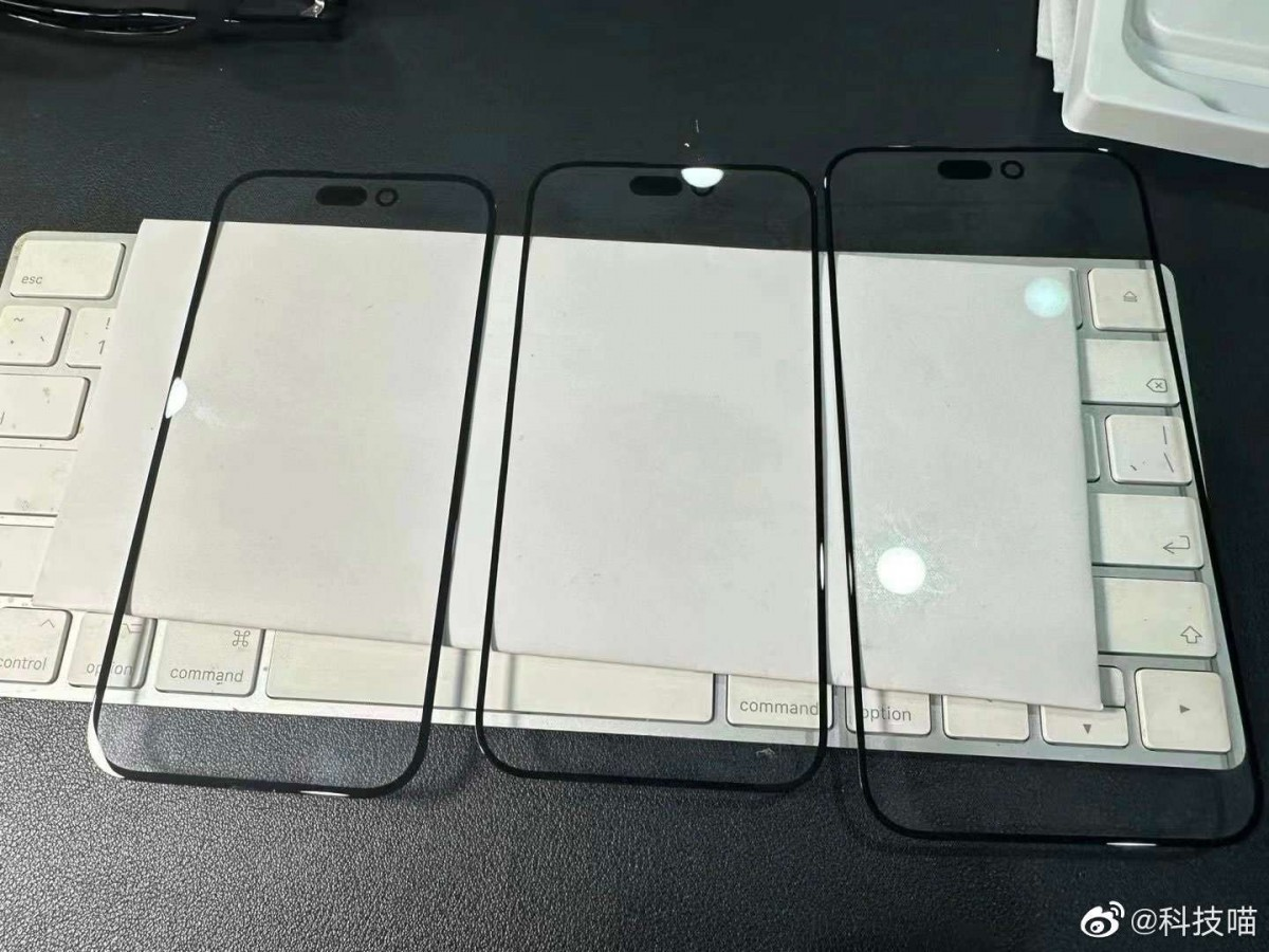 La última filtración sobre el iPhone 15 nos da una idea de sus pantallas. Un trío de paneles de cristal filtrados revelan que toda la gama iPhone 15 tendrá una Isla Dinámica. Las tres piezas de abajo son supuestamente del iPhone 15 a la izquierda, el iPhone 15 Pro en el centro, y el iPhone 15 Pro Max a la derecha.