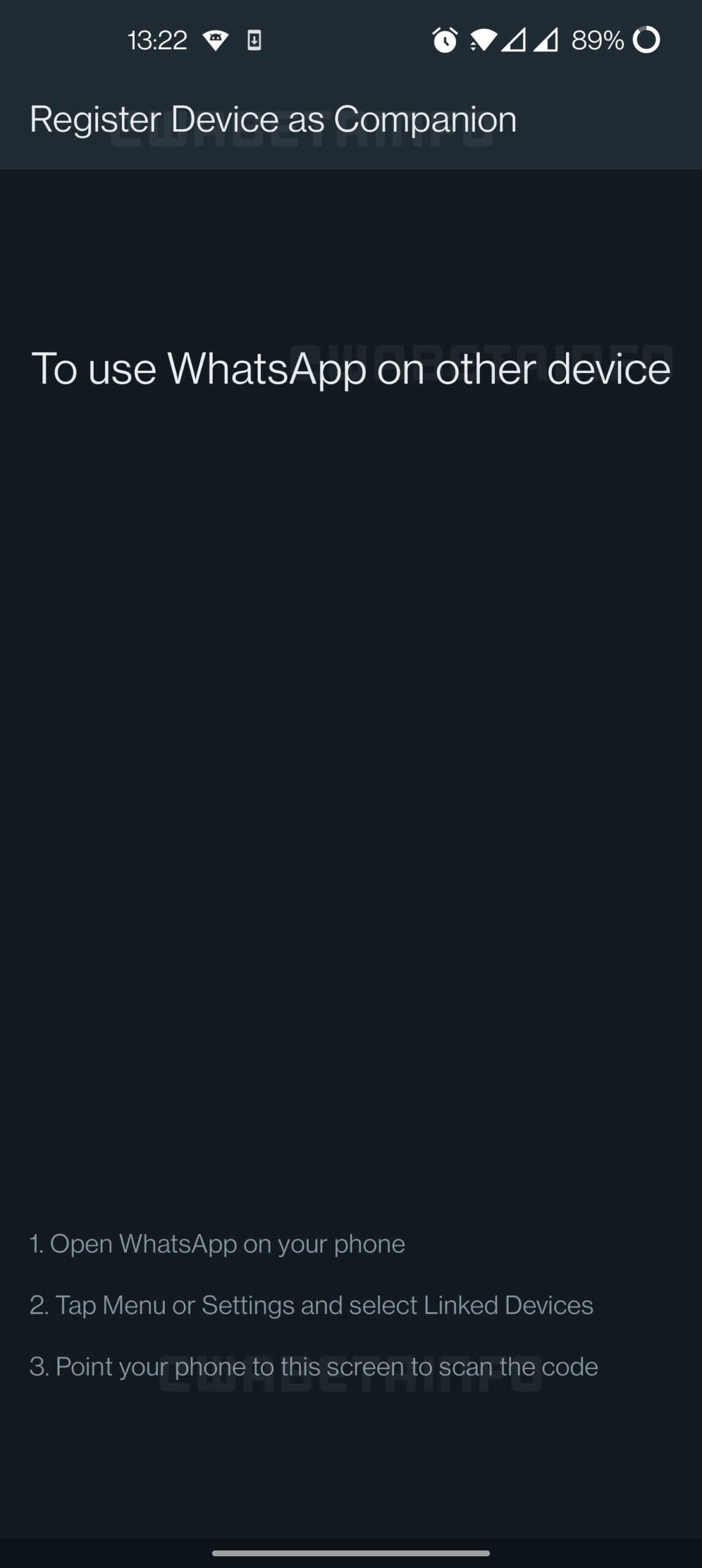 Como puedes ver en ésta captura de pantalla, la sección se llama "Registrar dispositivo como acompañante" y aparecerá cuando intentes abrir WhatsApp en un dispositivo móvil secundario. En este caso, también puedes decidir vincular tu cuenta de WhatsApp para poder utilizarla en otro dispositivo.